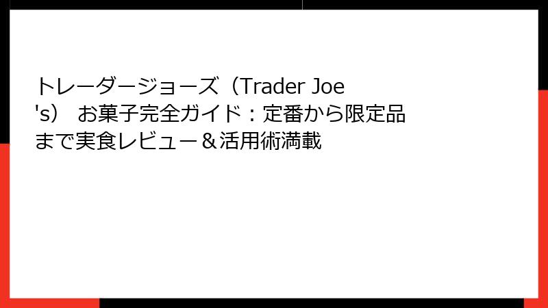 - トレーダージョーズ お菓子カタログ:定番から限定品まで20選の詳細レビュー