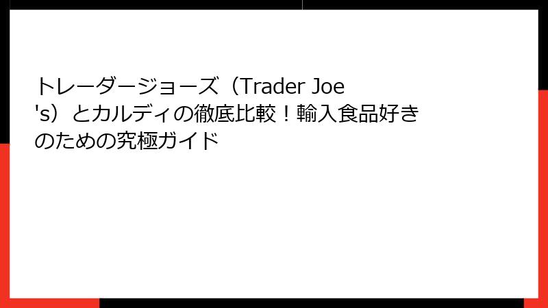 トレーダージョーズ(Trader Joe’s)とカルディの徹底比較!輸入食品好きのための究極ガイド