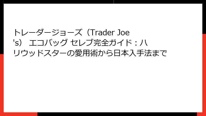 この記事では、トレーダージョーズ エコバッグがセレブに愛される全貌を、歴史からデザイン、活用法まで徹底的に解剖していきます。