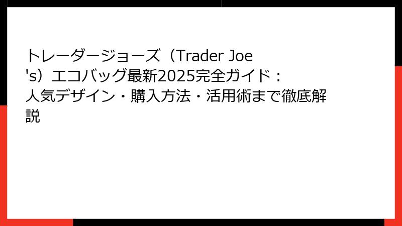 トレーダージョーズ(Trader Joe’s)エコバッグ最新2025完全ガイド:人気デザイン・購入方法・活用術まで徹底解説