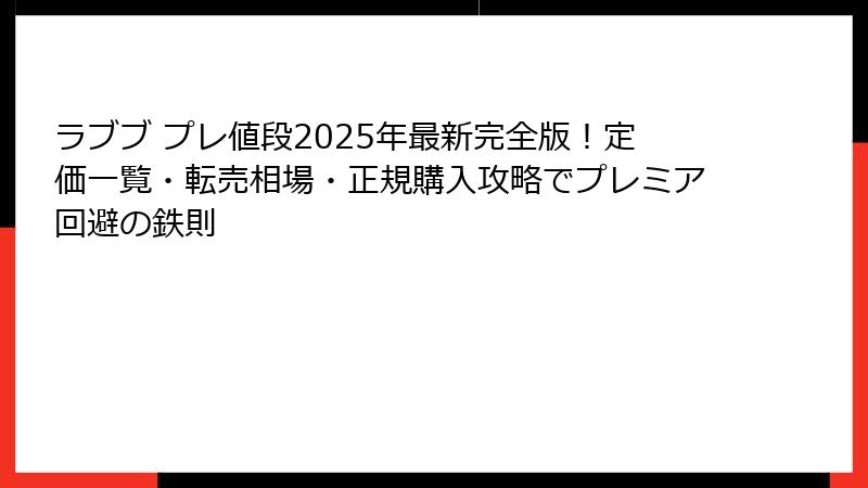 - プレ値は避けられる:正規ルート優先で99%回避