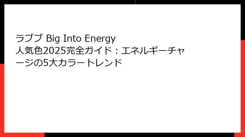 - 今日から始めるラブブ Big Into Energy 人気色ライフ! あなたのエネルギーを最大化しよう
