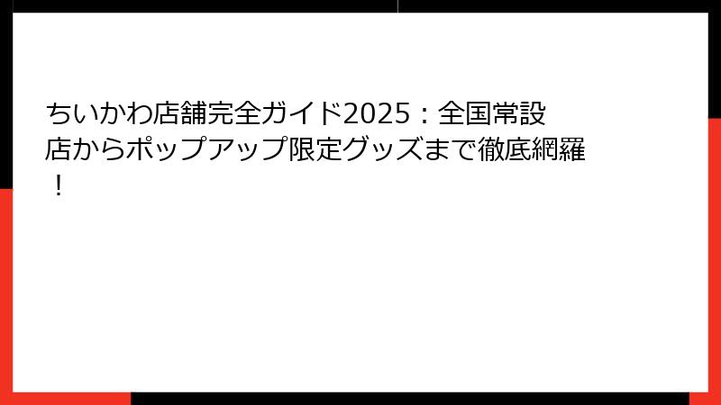 ちいかわ店舗完全ガイド2025:全国常設店からポップアップ限定グッズまで徹底網羅!