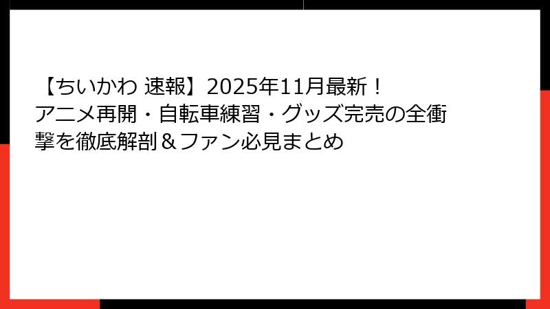 【ちいかわ 速報】2025年11月最新!アニメ再開・自転車練習・グッズ完売の全衝撃を徹底解剖&ファン必見まとめ