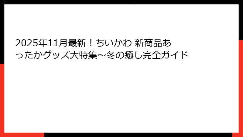 1. 2025年11月、ちいかわ新商品が熱すぎる!冬の癒しグッズで心も体もぽかぽか♡ 絶対チェックすべき最新ラインナップを徹底解説