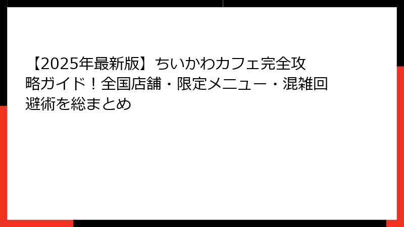 このガイドが、あなたの「ちいかわカフェ初体験」から「100回目のリピート」まで、ずっと寄り添えることを願っています。