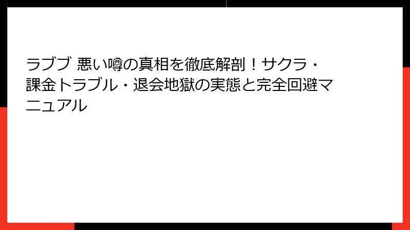 - 目的:「ラブブ 悪い噂」の検索者を「安心の出会い」へ導く