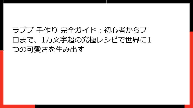 ラブブ 手作り 完全ガイド:初心者からプロまで、1万文字超の究極レシピで世界に1つの可愛さを生み出す