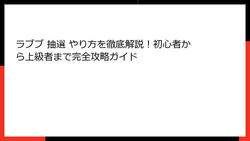 この記事を読むだけで、あなたも抽選マスターになれるはずです。