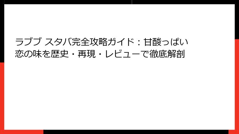 甘酸っぱい恋の味を自宅で再現し、店舗で味わい、歴史を知り、レビューで実感――ここまで読んだあなたはもうラブブマスターです。