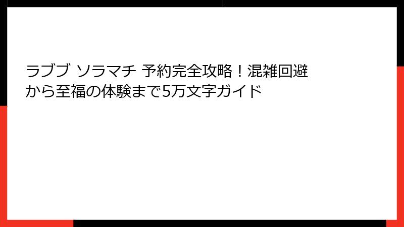 予約あり・なしの比較、メニュー評価、撮影術、トラブル対策――ここまでで「ラブブ ソラマチ 予約」の全貌が明らかになりました。