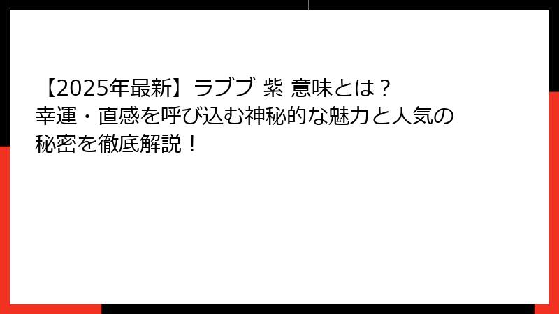 1. 「ラブブ 紫 意味」で検索したあなたへ――最初に知っておきたい衝撃の事実