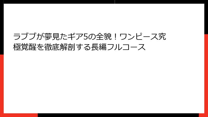 - ギア5が変えたワンピースの世界:ラブブの絆が深まる最終章