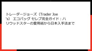 トレーダージョーズ(Trader Joe's)のエコバッグが日本で大人気!でも高くて手が出しにくい…そんな悩みを解決するドンキホーテの秘密トレーダージョーズのエコバッグが日本で爆発的人気になった理由トレーダージョーズ、通称「トレジョ」のエコ...
