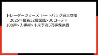 トレーダージョーズ(Trader Joe's) トレーダージョーズ(Trader Joe’s) バッグ完全ガイド:エコでオシャレな神アイテムのすべて