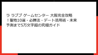 ラブブ ラ ラブブ ゲームセンター 大阪完全攻略!聖地10選・必勝法・デート活用術・未来予測まで5万文字超の究極ガイド