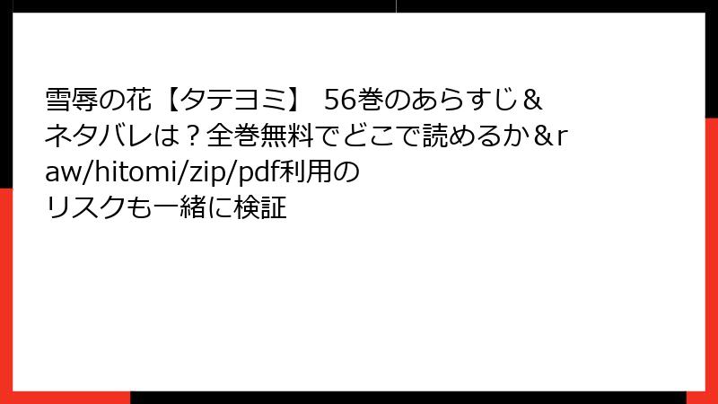 人気のBLマンガ『雪辱の花【タテヨミ】』は、復讐と愛憎のドラマが魅力ですが、海賊版サイト(raw、hitomi、zip、pdf、漫画バンクなど)で無料で読もうとするのは非常に危険です。この記事では、そうした違法サイトを利用するリスクを法的、セキュリティ、品質、倫理的観点から詳しく解説します。海賊版は一見お得に見えますが、隠れた落とし穴が多く、絶対に避けるべきです。以下で、各リスクを深掘りします。