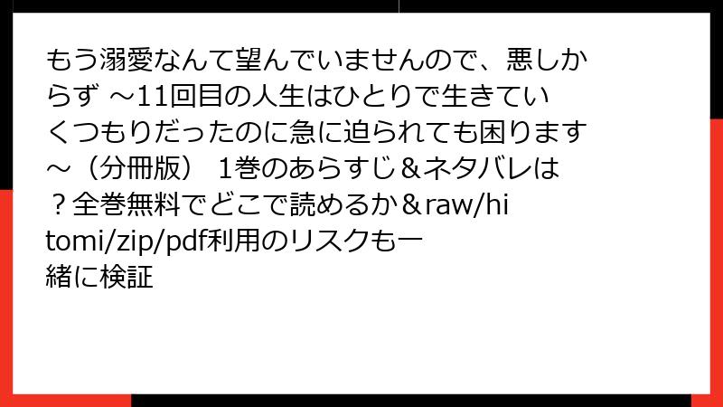 もう溺愛なんて望んでいませんので、悪しからず ~11回目の人生はひとりで生きていくつもりだったのに急に迫られても困ります~(分冊版) 1巻のあらすじ&ネタバレは?全巻無料でどこで読めるか&raw/hitomi/zip/pdf利用のリスクも一緒に検証