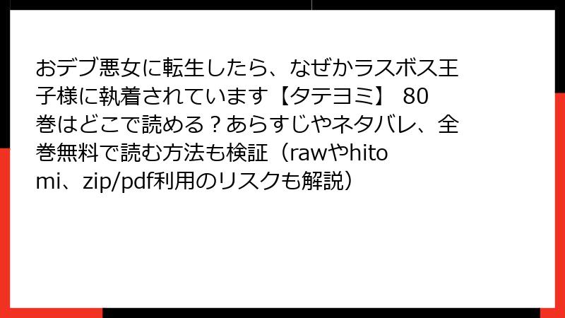 おデブ悪女に転生したら、なぜかラスボス王子様に執着されています【タテヨミ】 80巻はどこで読める?あらすじやネタバレ、全巻無料で読む方法も検証(rawやhitomi、zip/pdf利用のリスクも解説)