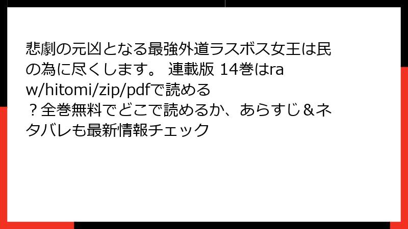 悲劇の元凶となる最強外道ラスボス女王は民の為に尽くします。 連載版 14巻はraw/hitomi/zip/pdfで読める?全巻無料でどこで読めるか、あらすじ&ネタバレも最新情報チェック