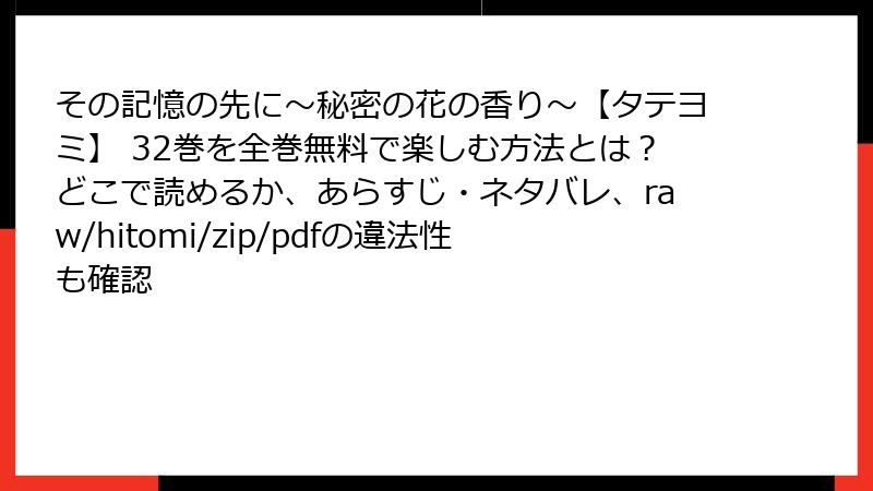 その記憶の先に~秘密の花の香り~【タテヨミ】 32巻を海賊版サイトで読むリスクの詳細