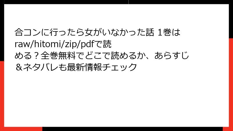 人気ラブコメ漫画「合コンに行ったら女がいなかった話」を、raw、hitomi、zip、pdf、漫画バンクなどの海賊版サイトで読むのは一見手軽ですが、深刻なリスクが伴います。この記事では、法的、セキュリティ、プライバシー、品質、倫理的側面から詳しく解説します。海賊版は違法行為を助長し、自身や社会に悪影響を及ぼす可能性が高いため、強くおすすめしません。公式ルートで楽しむことを推奨します。