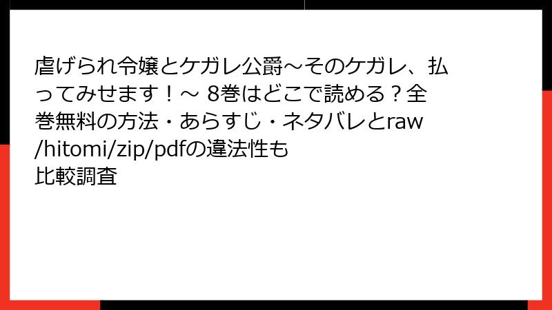 raw/hitomi/zip/pdf/漫画バンクなどの海賊版サイトは、法的罰則、ウイルス感染、情報漏洩のトリプルパンチで、決して「お得」ではありません。代わりに、BookWalkerやKindle、Manga Plusなどの正規アプリを活用を。初回無料キャンペーンが多く、高画質で安心。『虐げられ令嬢とケガレ公爵』も公式電子書籍で入手可能で、作者支援にもつながります。リスクを避け、愛する作品を長く楽しむために、正規ルートを選びましょう! 皆さんの安全な漫画ライフを祈っています♪