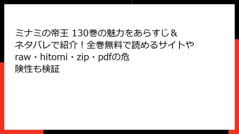 人気漫画『ミナミの帝王』の130巻は、医療業界の闇や奨学金制度の暗部を描いた魅力的な一冊ですが、海賊版サイト(raw、hitomi、zip、pdf、漫画バンクなど)で無料で読もうとする行為は深刻な問題を引き起こします。この記事では、そんな海賊版利用のリスクを法的・セキュリティ・経済的な観点から詳しく解説。単に無料で楽しみたいという誘惑に負けず、安全で正規の方法を選ぶ重要性を理解しましょう。読み応えを出すために、各リスクを細かく分解し、具体例を交えて分析します。