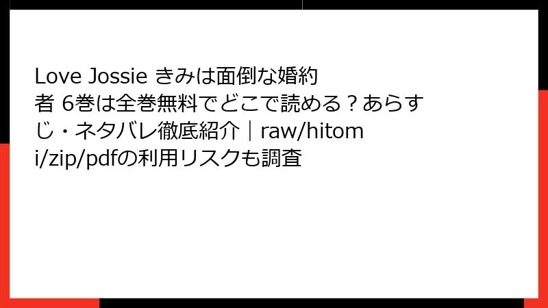 以上のように、海賊版サイトで「きみは面倒な婚約者」を読むのは、法的・セキュリティ・経済的・倫理的な多大なリスクを伴います。安全でクリーンな楽しみ方を選択し、正規の電子書籍サービスや書店を利用しましょう。リスクを避ける最善策は、こうしたサイトにアクセスしないことです。