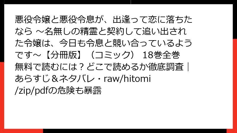 - 悪役令嬢と悪役令息が、出逢って恋に落ちたなら ~名無しの精霊と契約して追い出された令嬢は、今日も令息と競い合っているようです~【分冊版】(コミック)をraw/hitomi/zip/pdf/漫画バンクなどの海賊版サイトで読むリスク