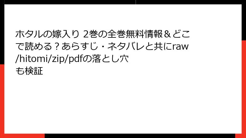 こんにちは、漫画大好きブロガーです! 人気作『ホタルの嫁入り』のような心揺さぶる作品を、無料でサクッと読みたい気持ち、めちゃくちゃわかりますよね。raw、hitomi、zip、pdf、漫画バンクなどの海賊版サイトは、最新巻が即アクセスできる夢のような場所に見えます。でも、2025年現在、これらのサイトはただの「罠の巣窟」。法的罰金からPC破壊、個人情報流出まで、利用者の被害が爆増中です。この記事では、そんなリスクを多角的に深掘り。ブログ風に読みやすくまとめました。結論:絶対に避けて、正規ルートで楽しもう! 作者の情熱を無駄にしないために、まずはリスクを知って賢く回避しましょう。