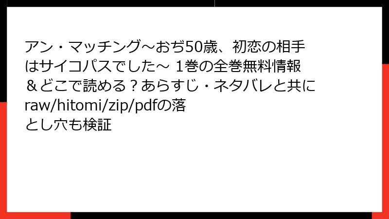 アン・マッチング~おぢ50歳、初恋の相手はサイコパスでした~ 1巻の全巻無料情報&どこで読める?あらすじ・ネタバレと共にraw/hitomi/zip/pdfの落とし穴も検証
