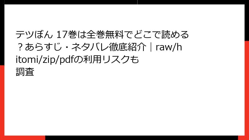 めちゃコミック(めちゃコミ)では、話単位での購入が可能。17巻全体で693円ですが、部分読みも選べます。オリジナル漫画が多い中、テツぼんのようなメジャー作品も揃っています。入荷お知らせ機能で新巻をチェックしやすいです。