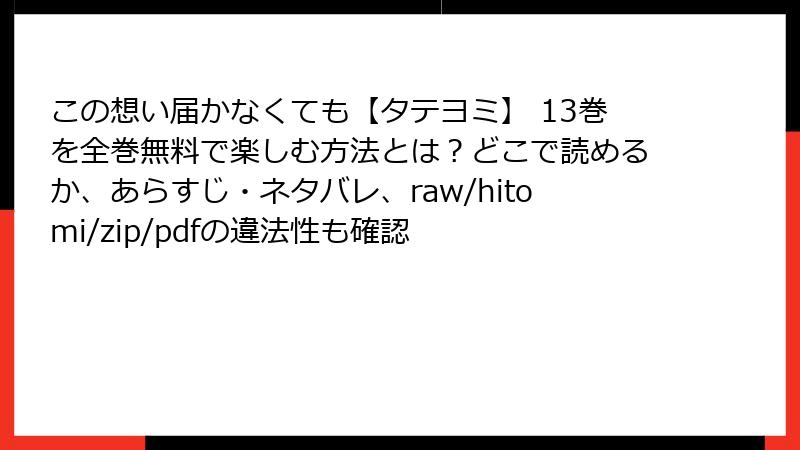 - 業界衰退の連鎖: 違法無料読みが横行すると、正規販売が減少し、作者のモチベーションが低下。結果として、好きな作品の続編が出にくくなります。「この想い届かなくても」のような人気作も、こうした影響を受けやすいです。