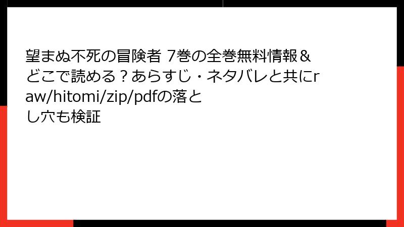 望まぬ不死の冒険者 海賊版サイトで読むリスク詳解