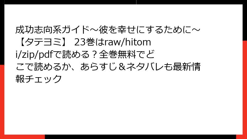 注意:この記事には、漫画「成功志向系ガイド~彼を幸せにするために~【タテヨミ】」23巻の重大なネタバレが含まれます。未読の方は閲覧をお控えください。以下では、物語の詳細を深掘りし、キャラクターの内面や出来事を徹底的に解説します。このガイドバースBL作品の魅力であるタイムリープと贖罪のテーマを軸に、読み応えのある内容でお届けします。