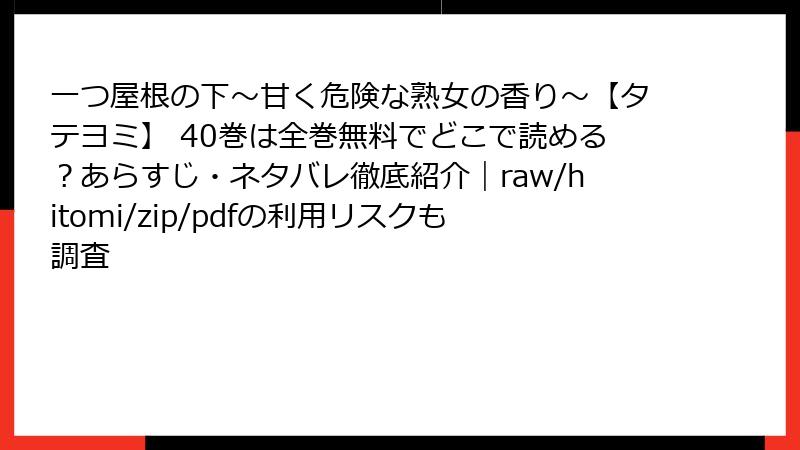 注意: この記事には、漫画「一つ屋根の下~甘く危険な熟女の香り~」の重大なネタバレが含まれます。未読の方はご注意ください。シリーズの人気エピソードである40巻を中心に、物語の深層を詳しく掘り下げます。禁断の関係とハーレム要素が絡み合う、甘く危険な展開をお届けします。