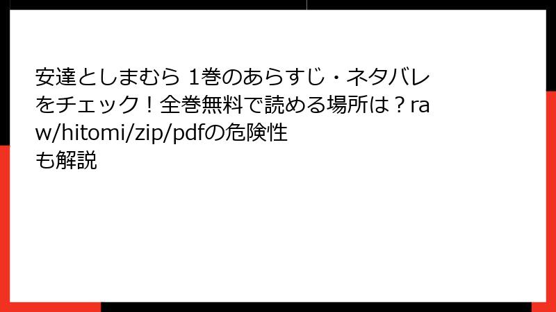 人気のライトノベルやコミック「安達としまむら」を、raw、hitomi、zip、pdf、漫画バンクなどの海賊版サイトで読むことは、手軽に思えるかもしれませんが、多くの深刻なリスクを伴います。この記事では、そうした海賊版サイトを利用する際の法的、セキュリティ、品質、倫理的な側面からリスクを詳しく解説します。海賊版は著作権侵害に当たるため、利用を避けることを強くおすすめします。以下で、各リスクを深掘りしていきましょう。