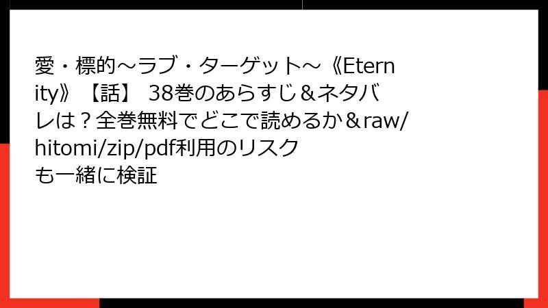 raw、hitomi、zip、pdf、漫画バンクなどの海賊版サイトで『愛・標的~ラブ・ターゲット~《Eternity》』を読むことは、法的罰則、セキュリティ脅威、倫理的問題を引き起こす危険な選択です。これらのリスクを避け、正規の電子書籍サービスを利用することで、高品質なコンテンツを安全に楽しめ、作者をサポートできます。無料試読やクーポンを活用し、合法的に漫画ライフを満喫しましょう。海賊版は一時的な満足に過ぎず、長期的には後悔を生むだけです。