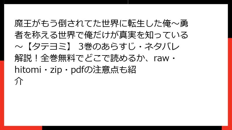 魔王がもう倒されてた世界に転生した俺~勇者を称える世界で俺だけが真実を知っている~【タテヨミ】 3巻のあらすじ・ネタバレ解説!全巻無料でどこで読めるか、raw・hitomi・zip・pdfの注意点も紹介