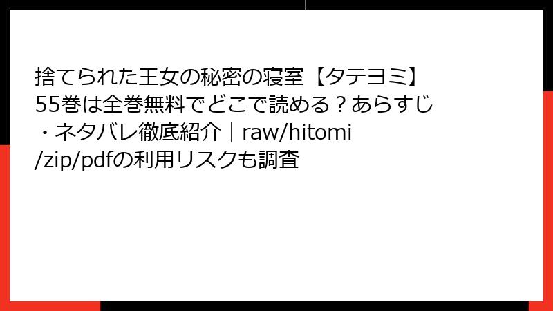 海賊版サイトで「捨てられた王女の秘密の寝室」を読むリスクは多岐にわたり、法的罰則からセキュリティ脅威まで深刻です。これらを避けるため、正規の電子書籍サービスや公式アプリを利用しましょう。安全で高品質な体験が得られ、作者を応援することにもつながります。リスクを理解し、賢い選択を心がけてください。