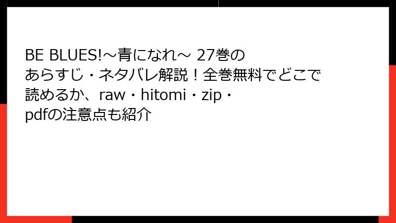 BE BLUES!~青になれ~ 27巻のあらすじ・ネタバレ解説!全巻無料でどこで読めるか、raw・hitomi・zip・pdfの注意点も紹介