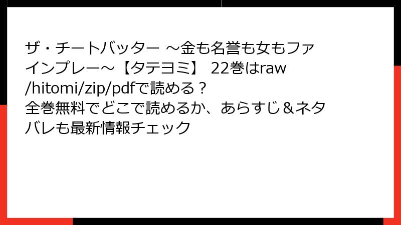 ザ・チートバッター ~金も名誉も女もファインプレー~【タテヨミ】をraw/hitomi/zip/pdf/漫画バンクなどの海賊版サイトで読むリスク詳解