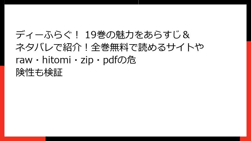 人気漫画「ディーふらぐ!」を、raw/hitomi/zip/pdf/漫画バンクなどの海賊版サイトで読むのは、一見手軽に思えるかもしれません。しかし、そこにはさまざまなリスクが潜んでいます。この記事では、そんな海賊版サイト利用の危険性を詳しく解説。法的問題からセキュリティの脅威まで、幅広く掘り下げます。海賊版はクリエイターの権利を侵害する行為であり、避けるべき選択です。