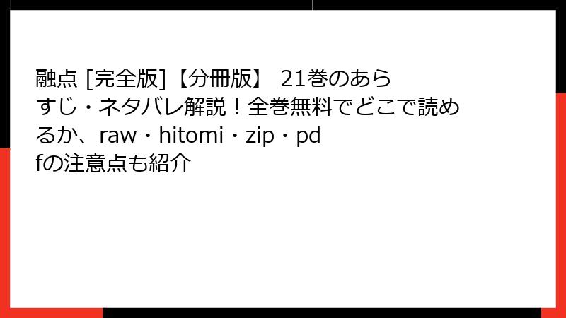 融点 [完全版]【分冊版】 21巻のあらすじ・ネタバレ解説!全巻無料でどこで読めるか、raw・hitomi・zip・pdfの注意点も紹介