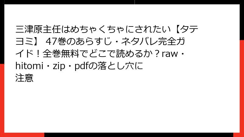 三津原主任はめちゃくちゃにされたい【タテヨミ】 47巻を海賊版サイトで読むリスク詳解