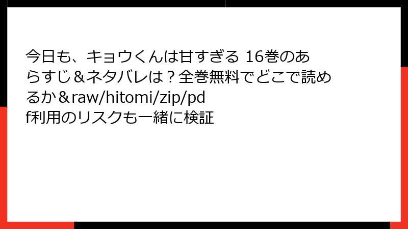 今日も、キョウくんは甘すぎる 16巻のあらすじ&ネタバレは?全巻無料でどこで読めるか&raw/hitomi/zip/pdf利用のリスクも一緒に検証