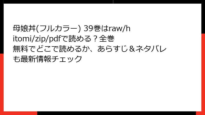 「母娘丼(フルカラー) 39巻」を読むなら、コミックシーモアやebookjapanがおすすめ。試し読みから始め、気に入ったら購入を。配信されていないサービスでは代替作品を探すのも一手です。電子書籍の利便性を活かし、気軽に楽しんでください。シリーズファンには全巻揃えやすいプラットフォームを選ぶのがベストです。