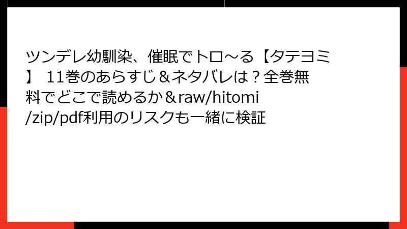 『ツンデレ幼馴染、催眠でトロ〜る【タテヨミ】 11巻』のような人気漫画を、raw、hitomi、zip、pdf、漫画バンクなどの海賊版サイトで無料で読もうとする人は少なくありません。これらのサイトは、著作権者の許可なく漫画を無断アップロードした違法プラットフォームです。無料で手軽にアクセスできるように見えますが、実際には多大な危険が伴います。この記事では、法的、セキュリティ、経済的な観点からリスクを詳しく解説し、正規ルートをおすすめします。海賊版利用は作者や業界全体に損害を与え、自身の安全も脅かします。