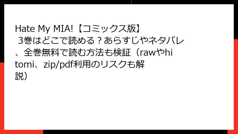 Hate My MIA!【コミックス版】 3巻はどこで読める?あらすじやネタバレ、全巻無料で読む方法も検証(rawやhitomi、zip/pdf利用のリスクも解説)